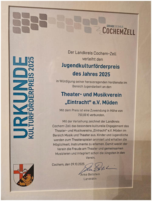 2025 des Landkreises Cochem-Zell freuen dürfen. Der verliehene Preis für besonderes